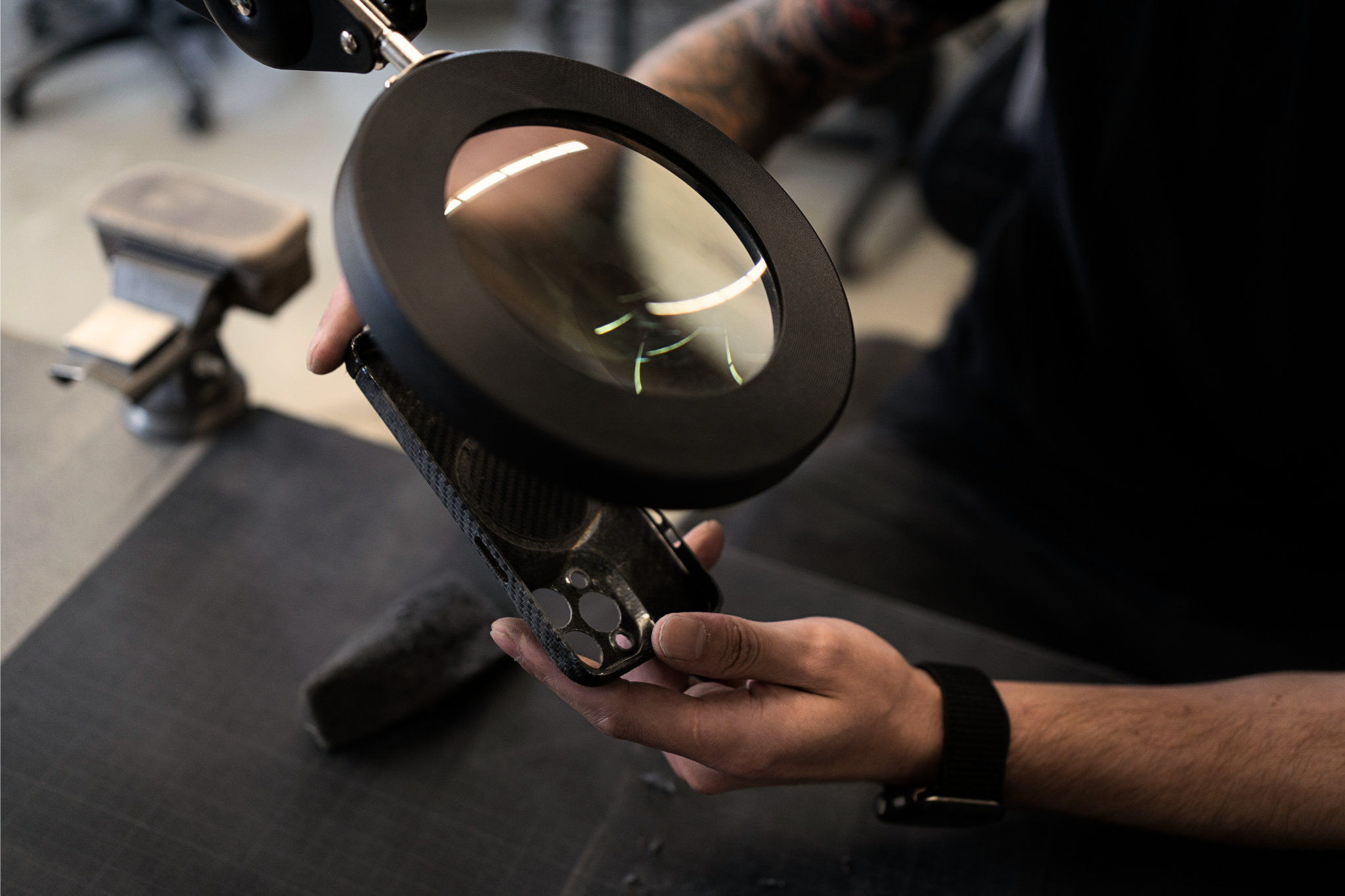 Jedes unserer Cover besteht aus Millionen einzelne Carbonfasern. Auf einen Zehntel Millimeter genau passend für jedes Smartphone individuell und mit Hand gefertigt.